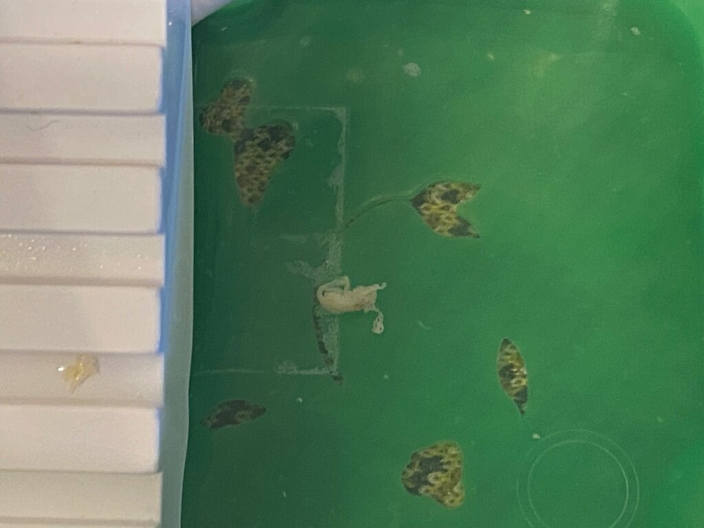 Пришла домой и заметила у черепашки еще какие-то сгустки в воде, не знаю отхаркивает она их или что это -