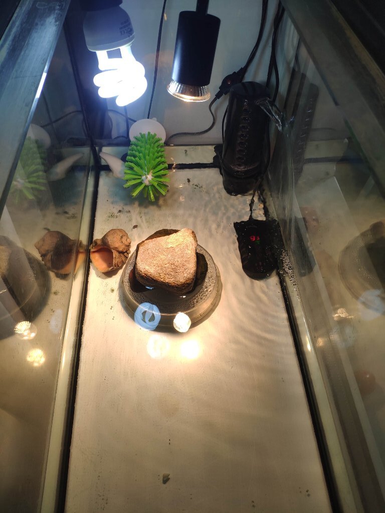 @Артем МиМи здравствуйте! Вам нужно заполнить анкету содержания, подробно ответив на каждый вопрос анкеты. По фото могу сразу сказать, что галогенка 2-в-1 не подходит для точки прогрева, а уф-лампа расположена высоковато. 1. Из какого вы города (области)? Ваш возраст? 2. Вид черепахи? Если не знаете, просто укажите водная. 3. Где содержится (пол, аквариум, террариум, контейнер)? Размер жилища? Какой объем воды в литрах? 4. Какое стоит оборудование? 4.1. Установлена ли лампа накаливания в качестве точки прогрева? Сколько часов работает в день? 4.2. Установлена ли ультрафиолетовая лампа? Если да, то с каким спектром UVB%? Как называется и как давно установлена? Сколько часов работает в день? 4.3. Установлен ли берег? Что используется в качестве берега? 4.4. Установлен ли фильтр для воды, если да, то какой, внешний/внутренний? Какая мощность? 4.5. Установлен ли нагреватель воды? 5. Имеется ли грунт в жилище черепахи? Если да, то какой? 6. Какая температура в жилище черепахи (воздуха/воды)? 7. Что черепаха ест и как часто? Какие даете подкормки и как часто? 8. Возраст, точный вес и длина панциря черепахи? В чём проблема/болезнь? Как давно проявилась? 9. Обращались ли в ветклинику? Как называется ветклиника? Как зовут врача (ФИО)? Вводились ли какие-то препараты, если да, то в каких дозировках? Что было сделано по рекомендациям врача? 10. К анкете приложите фотографии жилища и самой черепахи (чтобы на ней была видна черепаха и её болезнь, а также: вид сверху, по бокам, пластрон). Переместите фотографии в поле редактора сообщений или нажмите на кнопку в редакторе "Выберите файлы" (суммарный вес прикрепляемых изображений 5MB, если ваши изображения превышают указанный размер, то воспользуйтесь любым хостингом изображений, и прикрепите ссылки на размещенные изображения в десятом пункте анкеты).