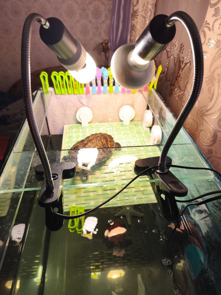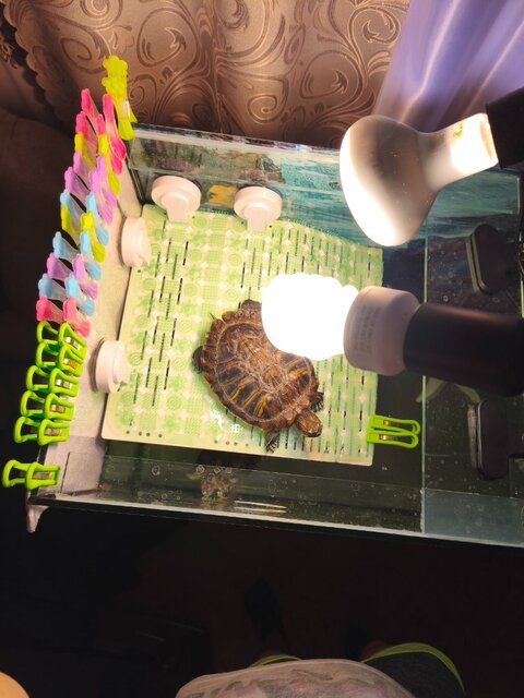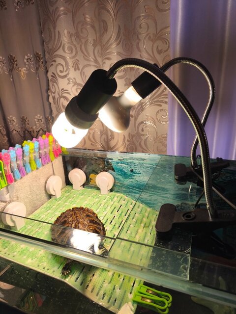 Здравствуйте. Забрала я у соседей черепашонка, в начале октября. 5 см панцирь, примерно год ему. Был скорее всего обезвожен, жил на земле, но она была сухая очень. Лампа была 2 в1. У меня неделю наверное не писал, почти не ел. Врачу показали, сказал все придет в норму при правильных условиях. Интенсивно его купала, ежедневно от 30-40 минут, спустя 1-1,5 нед начали отходить соли, песок с камушками. Стал есть. От сорных трав отказывался, поэтому с сорными травами даю маленький кусочек романо или латук, натертый кальцием, переживаю, чтобы не было дефицита, когда забрала, у него как будто пластинки отходят на панцире. И вот уже на протяжении 2-3 нед соли так и отходят песком. Поливаю землю постоянно (смешан нейтральный торф с песком), вода стоит, купаем ежедневно. Не зарывается, просто в домик уходит спать и всё. Огурец не ест вообще. Лампы установлены по прибору, УФИ до 4,5 на уровне панциря, может меньше нужно? Стоит про т5 мини, ветврач сказал мало, добавила вторую, е27, лаки херп, тоже по прибору, и даже чуть выше лампу подняла. Влажность 50-60, к утру падает до 40 из-за отопления. Температура в углах 24/31 @moth что неправильно делаю?