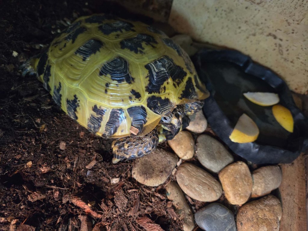 2. Здравствуйте, скажите пожалуйста что делать . Черепашка не ест 5 дней , постоянно спит и маловктивная. Кладу разнообразный корм и даже на любимую морковку мы не смотрим... купаю теперь последние 3 дня каждый день. В туалет ходит. Чем помочь ей и как заставить кушать? Кажется, что хочет в спячку уйти ,но я ей не даю . Прилагаю фото черепашки ниже. Содержится в кокосовом субстрате смешанном с землёй, есть лампа накаливания и уф.