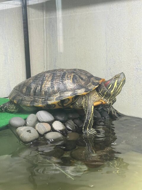 13. Добрый вечер! Помогите разобраться с некоторыми вопросами пожалуйста и подскажите что нужно исправить. 1. Москва, 40 лет 2. Красноухая 3. Аквариум, 35*17*20см, 15 л (куплен на первое время, надеялись что хватит на первый год, но почитав форум, поняли что нет) 4. 4.1. Ультрафиолетовая - греющая лампа 2 в 1 для аквариума и террариума 3.0 UVB, мощностью 25В. Работает 12-13 часов в день. 4.2. MCLANZOO, uvb25, 26w, для рептилий, стояла пару дней пока ждали доставку лампы 2в1, потом убрали. Нужно ли поставить ее дополнительно к той 2 в 1? 4.3. Берег-платформа пластиковый со ступенями, шел в комплекте с аквариумом. Нужно ли стелить на него коврик-искусственную траву, если черепаха и без него иногда выбирается на сушу и греется? 4.4. Фильтр пока не устанавливали, модель в фото ниже 4.5. Да, настроен на 26 градусов 5. Цветные камни, ракушки, размер крупнее головы черепахи не менее чем в 2 раза. 6. Температура воздуха в аквариуме в районе лампы 30-31, воды 26 7. Ест сухой корм для водных черепах Tetra ReptoMin Stisks. Несколько раз давали гаммарус, но потом перестали, прочитали, что лучше не давать. 8. Черепаха маленькая, панцирь около 3 см, вес не измеряли, куплена 3 недели назад, это наш первый питомец, заволновались, увидев что в воде через 2-3 дня после полной смены воды появляются белые хлопья похожие на слизь, у черепашки на лапах тоже будто собирается эта слизь, ребенок заметил, что она похожа на паутинку будто, хлопьями такими. Нормально ли это или это какой-то грибок или начало заболевания? Еще кажется что на пузике посередине появилась белая полоса продольная. При этом черепаха активная, ест отлично, поведение обычное. 9. Нет 10. Фото по ссылке https://disk.yandex.ru/d/qk1rGkIVvD27Iw Как часто нужно мыть аквариум? Читаем разные источники и везде пишут разное: то ли полностью менять можно воду то ли частично менять. Можно ли использовать фильтрованную воду с минерализатором (сейчас заливаем такую) или нужно отстаивать обычную и как долго отстаивать? Нужно ли мыть панцирь даже такой маленькой черепахе? Достаточно ли сухого корма или нужно добавить еще что-то? Вычитала на форуме здесь про сепию, что нужно кусочками по 0,5 см бросать их в воду, но возник вопрос: не проглотит ли целиком такой кусок черепаха, не подавится ли?
