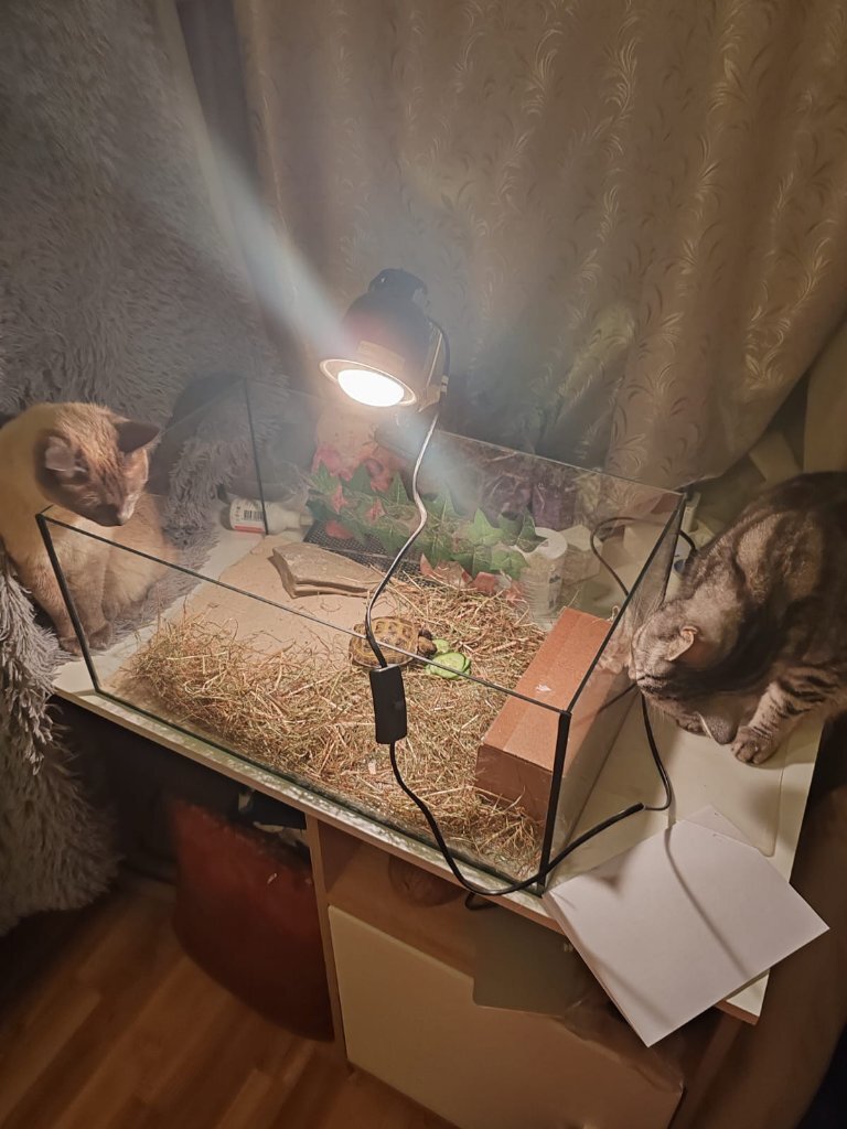 @ЧЕПАДОНЯ @Ribi0Elen2А@Ribi0Elen2А (извините за баг) А вы не знаете как приручить черепашку, или это норма что она боиться? Хозяйка сказала добрая, не боиться людей. Как только издаешь звук. Хоть шепотом рядом с ней она прячется в панцирь или останавливаеться чтобы она не делала в этот момент, хоть ест хоть выламывает стены. А если руку над ней проведёшь шипит😨. Все время пытаеться сбежать из терариума поднимаеться секундно на лапах и падает об дно. (там пока что немного сена и субстрата кокоса) потом поменяю. Но она их двигает и в одном углу бесится СПЕЦИАЛЬНО отодвигает грунт и об стекло где погромче шлепаеться об пол🤦. Терариум на фото приложила. Да пока что маленький и там все плохо. Но приеду через неделю домой поставлю нормальный домик, грунт как надо и тд. Терариум тоже поменяю через 1-2 месяца. Может ей терариум сам не нравиться или что это за бунт? -