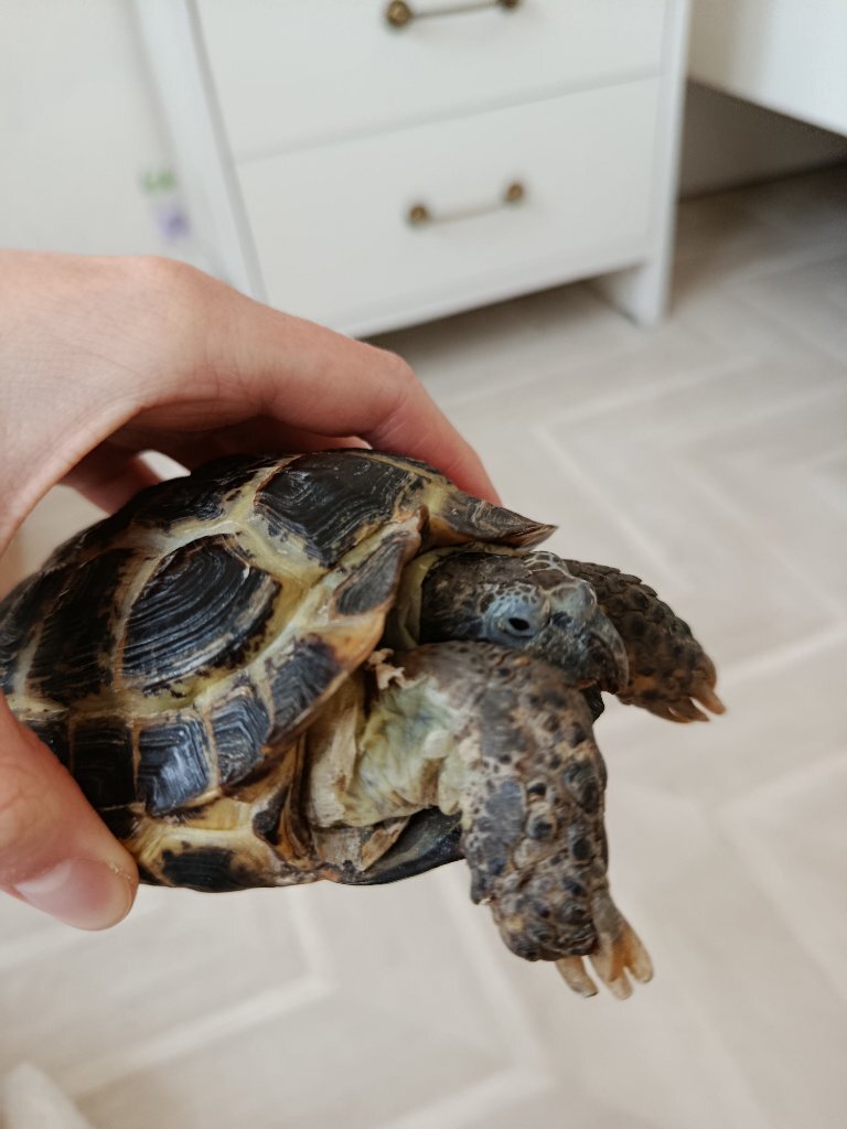 9. 1. Из какого вы города (области)? Ваш возраст? - Город Набережные челны, Татарстан мне 23 года, черепахе мы не знаем сколько, по всей видимости ей меньше года 2. Вид черепахи? Если не знаете, просто укажите водная. - Красноухая черепаха 3. Где содержится (пол, аквариум, террариум, контейнер)? Размер жилища? Какой объем воды в литрах? - Содержится в аквариум-террариуме 10 литров, объем воды соответственно примерно 9 литров размер 30.6x19.6x18.4см https://ozon.ru/t/9weKxzq уже вычитал в вашем форуме о необходимости аквариума в 100-200 литров 4. Какое стоит оборудование? 4.1. Установлена ли лампа накаливания в качестве точки прогрева? Сколько часов работает в день? - да установлен, 25w периодически включаем и выключаем, так как точка прогрева получается слишком горячей уже прочитали в форуме о необходимости постоянной работы с уф лампой 10-12 часов для этого увеличили расстояние по высоте до берега и теперь постоянная температура 33.7 в точке прогрева 4.2. Установлена ли ультрафиолетовая лампа? Если да, то с каким спектром UVB%? Как называется и как давно установлена? Сколько часов работает в день? - да установлен, но после обнаружения проблем с черепахой, в сравнении с лампой накаливания работает как положено 10-12 часов в день, производитель wacool uvb 5.0 13w 5%uvb 4.3. Установлен ли берег? Что используется в качестве берега? - да, пластиковая подставка со ступеньками 4.4. Установлен ли фильтр для воды, если да, то какой, внешний/внутренний? Какая мощность? -да, внутренний фильтр, мощность не известна, он скорее всего самый дешёвый, но такой объём воды фильтрует хорошо Покупался на озоне набор аквариум, нагрев. Лампа, фильтр, берег https://ozon.ru/t/9weKxzq 4.5. Установлен ли нагреватель воды? - да, но после обнаружения проблем с черепахой, сейчас температура воды 28 градусов 5. Имеется ли грунт в жилище черепахи? Если да, то какой? -нет, только маленькие камни галька и маленькие ракушки 6. Какая температура в жилище черепахи (воздуха/воды)? - воздух 33.7 градусов, так же был приобретён термометр только после обнаружения проблем с черепахой - вода 28 градусов 7. Что черепаха ест и как часто? Какие даете подкормки и как часто? - на данный момент абсолютно ничего не ест уже неделю. Изначально черепаху забирали у родственников 30 ноября 25г., так как она им была не нужна и условия для него были вообще не подходящие, давали то что было у них, это какие то сухие маленькие червячки, и гранулы Тортила. После изучения условий жилья (как вы поняли, мы получили не всю информацию) для черепахи мы приобрели данный набор, ссылка выше, и думали что на этом все хватит, в добавок купили корм Tetra Repto mini junior кормили и сухими червячками и Тетрой два раза в день по размеру его головы Далее нам предложили купить замороженную моль (маленькие тонкие красные черви), которая продается в кубиках и сказали кормить два раза в день четвертинкой и после прочтения форума, я так понял, это стало главной ошибкой и перекормили и вообще нельзя было их давать 8. Возраст, точный вес и длина панциря черепахи? В чём проблема/болезнь? Как давно проявилась? - возраст как мне кажется менее года, вес ничем измерить не можем, длина панциря 4см, пишу уже поздно ночью, утром могу купить весы Болезнь заметили 27 декабря 2025, после изучения тематики болезней, мы поняли наши изначальные упущения, и 29 числа докупили термометр для воды, один снаружи (тонкая полоска которая клеится на стекл