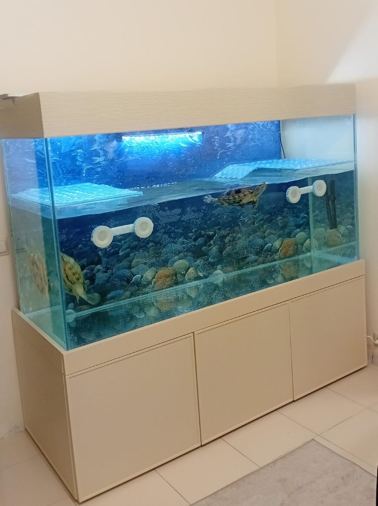 @olisaa По порядку. Берег - зависит от размера аквариума, но длина - равна ширине аквариума, ширина - как получается, но не меньше 20см. Трап - лучшие параметры : 22x22см, угол наклона 2:1 (т.е. на 2см длины - 1см высоты). Прозрачные - это оргстекло или поликарбонат, поликарбонат лучше ПВХ, но дороже. Оргстекло - не клеится. Решетка нежелательо, черепаха по ней и вылезет ! Тумба-каркас из чего ? Под сам аквариум надо либо толстую фанеру (10мм), либо мебельный щит из дерева (не ДСП!), сверху него - подложка, либо коврик для гимнастики (лучше), либо подложка под ламинат 10мм (можно 2 слоя по 5мм). Под тумбу ничего не надо, если она сама прочная. Фильтр Тетра очень ненадежный - у меня потекли все 4 через 2 года, несколько раз все заваривал, там ненадежный адаптер. Лучший для вас был бы - Эхайм Классик 600, но он правда намного дороже. Сейчас советуют SunSun, один я недавно купил, работает хорошо, бесшумный, легко запускается (в отличие от Тетры - там что-то страшное, кнопка запуска выходит из строя сразу), но сколько он прослужит - не знаю. -
