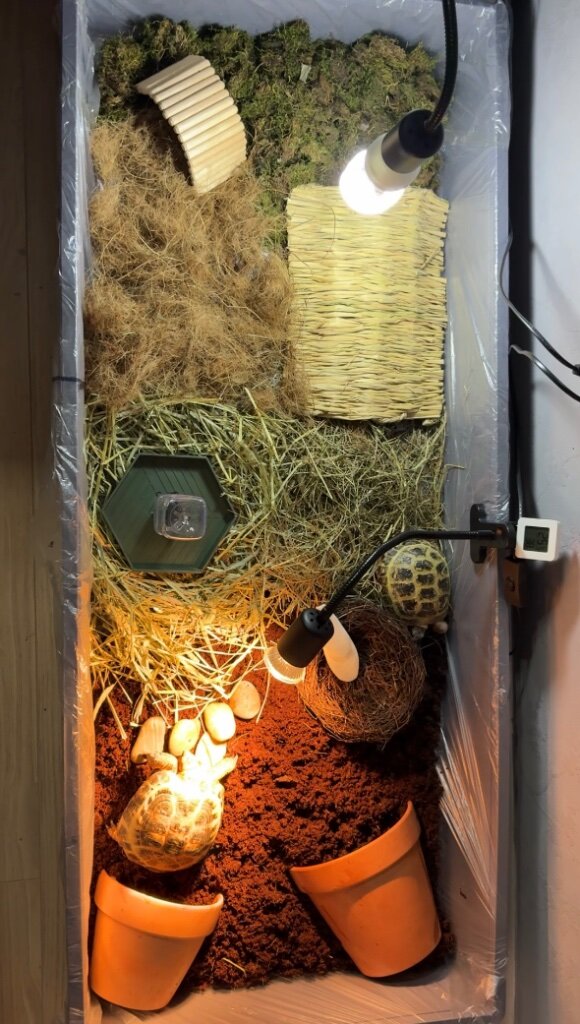 Черепашки у меня уже два года, прошли через все. Начинали с супер маленьких контейнеров из фикспрайса, далее перешли на 60^35 и жили там почти 1,5 года. Вчера наконец пришла посылка и вот что вышло: Прошу честный отзыв и рекомендации. Размер 120^60, живут вдвоем. Это не предел, знаю, но куда лучше того, что было. К ним еще едет специальная кормушка, фотку тоже прикреплю. Вопрос! После переезда прошли сутки, и происходит что-то странное. Черепашки гиперактивны, шкребутся по всем углам, разорвали уже все, что можно и никак не хотят лечь спать. Кушают тоже слабо. Адаптация? Впервые их такими вижу. Может они так свою радость показывают или им наоборот все не нравится, что они хотят выбраться?