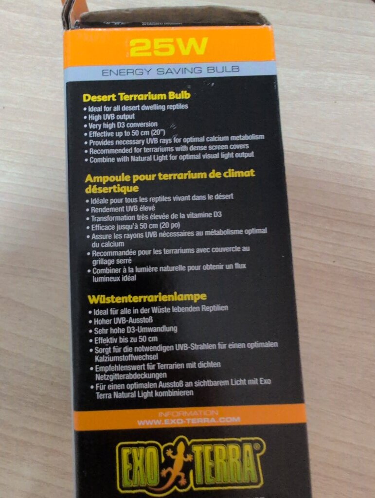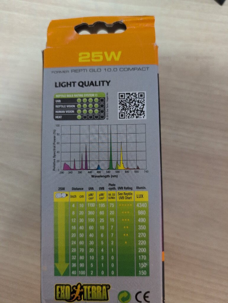 Лампа, которую вы заказали слабая, она не подойдет. Рекомендуют лампу для рептилий 10-12% UVB - из бюджетных можете брать SparkZoo 10% 26вт, Lucky Herp 15% 26вт, Repti Planet (если найдете). -