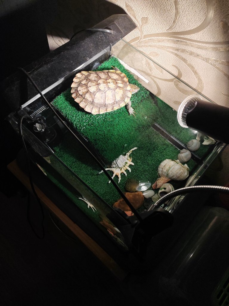 Остров так то в 10 раз больше черепашки, но лампу УФ передвину. Ракушки и камешки дочь насобирала и ей так захотелось. Бочку уберу. Маленький мостик шел в комплекте с аквариумом, но он был слишком мал для 2 двух ламп и мы купили большой.спасибо за ваши комментарии и советы Колпак не греется и патрон керамика так что пока все гуд. Нагрев ставлю на межсезонье когда батареи еще не работают и ночью окно на проветривании так что в комнате 20 градусов сейчас. Мне кажется фильтр ей по приколу, заметила по тихому что она сама на него прыгает и лапы расставляет и так по кругу много раз. Хотя фильтр направлен струей в бок и вверх и ее не водоворотит просто так если сама того не хочет. вот маленький островок опущу как вы говорите. Думала кстати на этот островок кокосик купить как раз типа домика. -