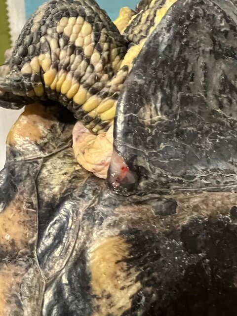 Из какого вы города (области)? Ваш возраст? Москва Вид черепахи? Если не знаете, просто укажите водная. Красноухая Где содержится (пол, аквариум, террариум, контейнер)? Размер жилища? Какой объем воды в литрах? Аквариум 160 литров Какое стоит оборудование? 4.1. Установлена ли лампа накаливания в качестве точки прогрева? Сколько часов работает в день? Греющая лампа на 50 вт. 4.2. Установлена ли ультрафиолетовая лампа? Если да, то с каким спектром UVB%? Как называется и как давно установлена? Сколько часов работает в день? Arcadia 10 % работает по 11 часов. Последняя замена была осенью 4.3. Установлен ли берег? Что используется в качестве берега? Стеклянный островок с покрытием 4.4. Установлен ли фильтр для воды, если да, то какой, внешний/внутренний? Какая мощность? Внутренний Aquael turbo 1500 4.5. Установлен ли нагреватель воды? Aquael Имеется ли грунт в жилище черепахи? Если да, то какой? Грунта нет Какая температура в жилище черепахи (воздуха/воды)? Температура воды 26 градусов Что черепаха ест и как часто? Какие даете подкормки и как часто? Кормление 2 раза в неделю - рептомином и хеком. В качестве лакомства огурец, банан, морковь. Возраст, точный вес и длина панциря черепахи? В чём проблема/болезнь? Как давно проявилась? 10 лет Обращались ли в ветклинику? Не обращались. Добрый вечер У красноухой черепахи слоится панцирь, но сам полностью не отслаивается, образуются многослойные наросты по краям. Попробовала подчистить скальпелем и в одном месте после снятия чешуи пошла кровь. Промыла ранку хлоргексидином и отсадила в сухой контейнер. Подскажите, как долго черепахе стоит находиться без воды? Нужно ли отвезти в герпетологу или достаточно подождать пока ранка подсохнет? Также у черепашки кожа краснеет и постоянно висят ошметки. Обращались к нескольким герпетологам из списка на сайте, сдавали анализы - все в норме.