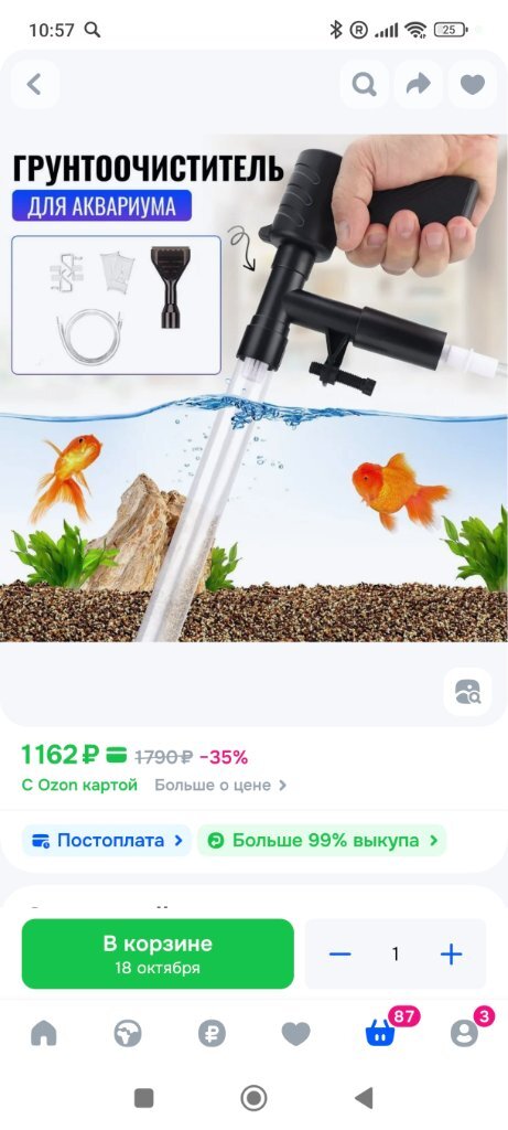 @Лерик Я например какашки вынимаю по мере поступления. Потому как они могут их есть, а чаще просто по всему аквариуму разметать. На Озон посмотрите сифон и подберите по вашим параметрам. Я например пользуюсь старым в маленьком аквариуме и новым доработанным в большом, что бы руки не мочить. Главное не берите такой. Развалился через неделю. Обычные с грушей самое то.