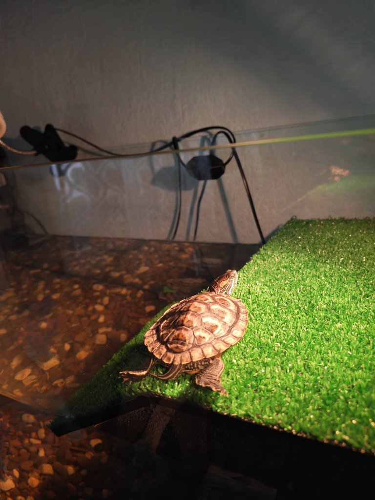 Добрый день! В последнюю неделю заметила, что черепах мало греется под лампами, или мне так кажется. Он бросается ко мне, в воду и плывет на движение, когда я подхожу, и мало времени проводит под лампами. Просто раньше он явно сидел на берегу, расставлял лапы и просыхал, сейчас практически сразу вылез и в воду. Иногда выходит, побьется мордочкой в пластик защитный, уходит. Нет наслаждения солнцем, так сказать. Как только видит людей - сразу к ним, привлекает внимание и рвется наружу. Температура на суше 29-30 градусов, в воде 25,4, то есть, мало поменялась с предыдущей плохой лампы. Аппетит прекрасный, с отходами проблем тоже нет. Возможно, я что-то упускаю из виду? Или такое поведение нормально? Может ли быть, что ему не нравится коврик? -