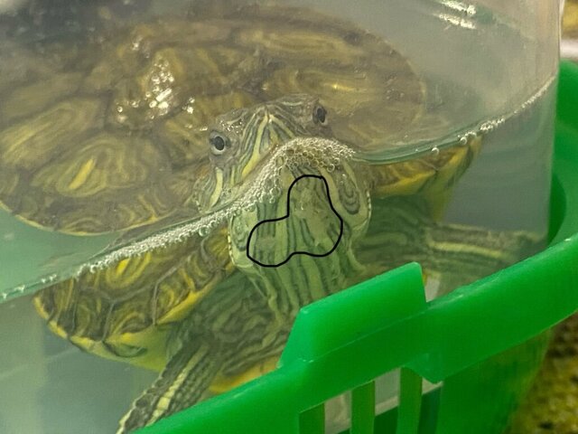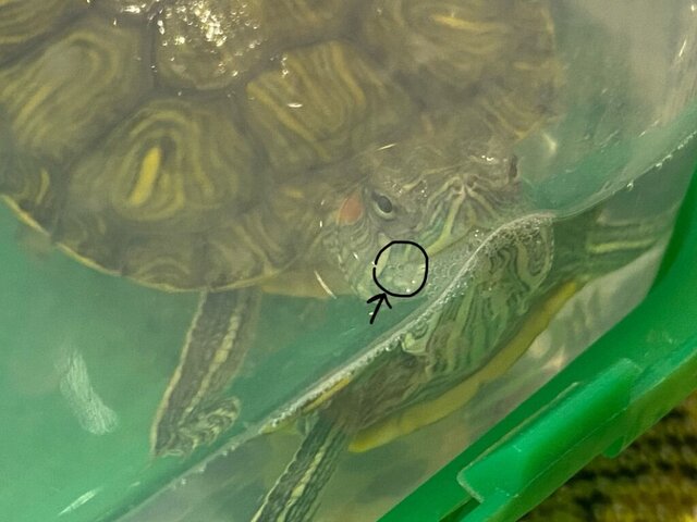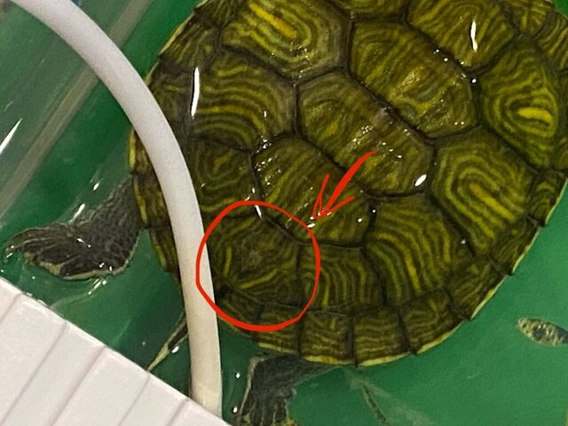 2. 1. Из Магадан, возраст 16 2. Красноухая 3. В контейнере, размером 50 на 33 см и в высоту 16 воды примерно 8 литров наливала т.к черепашку уже это покрывало и она могла плавать 4. 4.1 Лампа установлена, работает 10 часов в день 4.2 ультрафиолетовой не было 4.3 берег установлен, в качестве берега мостик с площадкой и кормушкой 4.4 фильтр внутренний, внутри мостика, мощность не знаю 4.5 нагреватель есть 5.грунта нет, только один большой камень 6.воздух не знаю, комнатная температура 23 градуса, температура воды 26-27 7.черепаха ела гамарус и корм reptomin baby, кормила 2 раза в день, но черепаха по большей части питалась гамарусом, корм редко ела, подкормки она никакие не ела 8. Возраст около 4 месяцев, длина панциря 4,5 см, вес не могу сейчас померить, проблема: у черепахи белый сгусток около рта и на подбородке немного, когда открывает рот из него валит пена, не какает, на панцире пятно как стесанное,с момента появления пены несколько часов 9. В ветклинику не ходили, у нас нет в городе специалиста по рептилиям, но в ветаптеке посоветовали прополоскать в разбавленной марганцовке и пару капель этого же закапать в рот что мы и сделали 10.выше фото черепахи и условия в которых жила, сейчас в отдельном контейнере находится