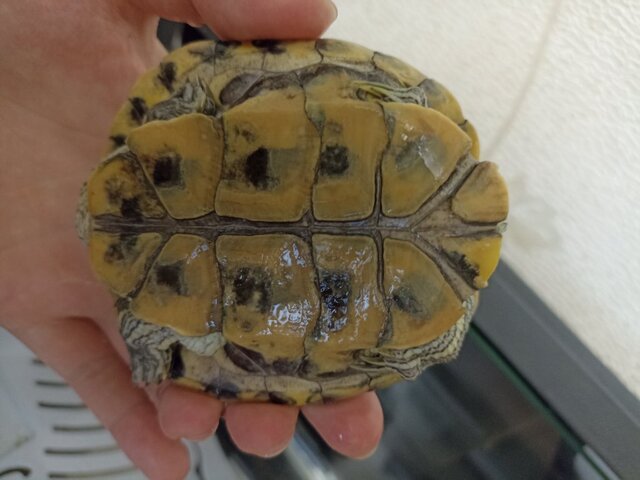 У черепахи пластрон стал не много мягким , и появились не из откуда маленькие трещины
