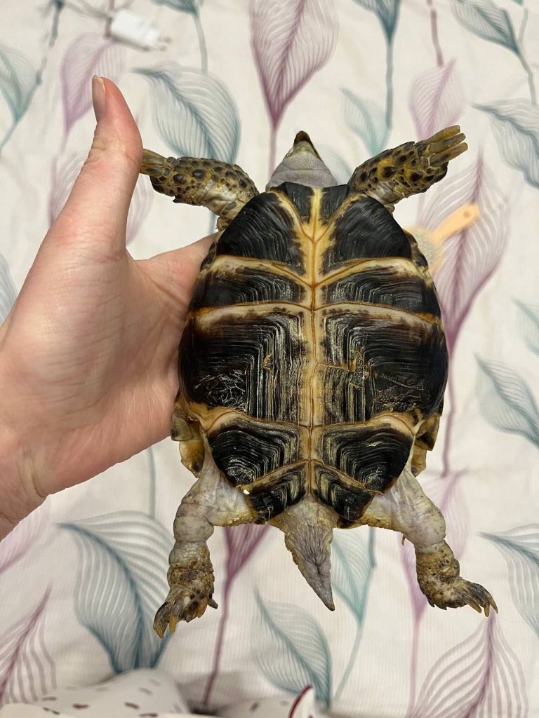 1) Челябинская область, Трёхгорный. 16 лет 2) Среднеазиатская черепаха 3)Черепашка пока живёт на теплом коврике, иногда спит в пледе, специально сшитым для неё, рядом с соляной лампой, чтобы греться. 4.1) специальной лампы, и террариума нету, до этого она жила на полу, сейчас потихоньку начала о ней заботиться, греется рядом с соляной лампой каждый день около 15-20 минут. 4.2) ультрафиолетовой лампы нет 5) пока она спит на теплом коврике, но скоро закажу кокосовый коврик и контейнер для её содержания 6) она находится в моей комнате, но вечером греется у лампы, и она рядом с батареей, но воздух не сухой. Температура в комнате где-то 20-25° 7) Раньше мы за ней не ухаживали((( Кормили и варёными яйцами, и куриными сердечками, макаронами, рисом, она овощи вообще никогда не ела😣Сейчас она стала редко есть, 1-2 раза в неделю, по 2-5 укусов. Очень вялая. Сейчас я купила минеральный микс на Озоне, с кальцией, яичной скорлупой, морскими водорослями, пивными дрожжами и тд, для общего укрепления панциря, улучшения пищеварения и повышения сопротивляемости организма. Думаю ей нужно витаминчики и кальций 8) Ей +- 10 лет, вес 340 грамм, длина панциря 13 см. Меня тревожит её слабость, её кожа стала бледно-зелёного цвета, она часто спит, мало ест, аппетита вообще нет. Но стала активнее когда я начала её укутывать в тёплый кокон и когда она лежит около лампы стала чаще ползать и открывать глазки.Но это только благодаря теплу. Также у неё немного опухли веки, но сейчас они потихоньку сдуваются, но болезненной реакции на свет нету,и веки не воспалены, просто как отёк,её панцирь на брюшной части стал немного мягким, почему я и заказала порошок для рептилий с кальцием. Думаю что это все произошло из-за моей халатности, она все времена года спала на полу, без тепла, без лампы, ела человеческую еду, замерзала, мало плавала(( Она могла месяцами спать на одном месте, иногда у неё текли сопли из носа, и стул был зелёный и вонял, сейчас такого давно нет, у неё только слабость, сонливость и потеря аппетита. Так длится около 2-х месяцев. 9) В нашей ветклинике специализируются только на кошках и собаках, на грызунах и рептилиях не очень. Все мои бывшие крысы, хомяки, кролики чувствовали себя хуже после посещения, крыса умерла через 7 часов после операции. Черепашку уже не хочется туда вести( А до большого города ехать минимум 3 часа и очень затратно. Так что консультации черепашки никогда не было. 10)