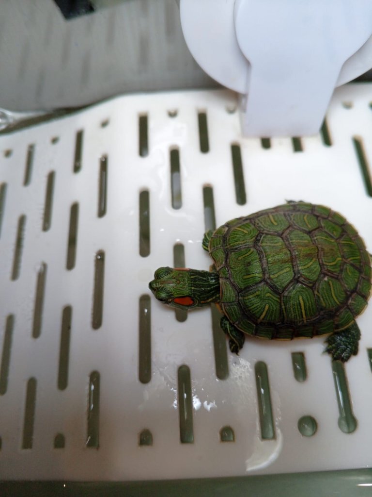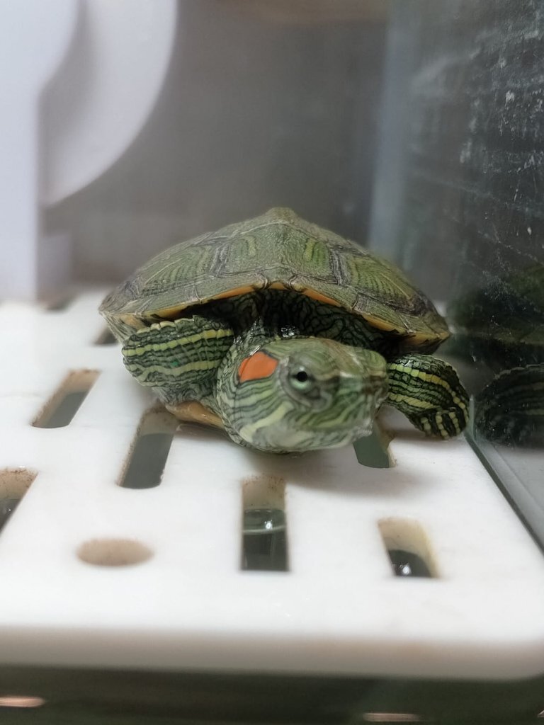 1. Из какого вы города (области)? Ваш возраст? Московская область, г. Королёв. 16 лет 2. Вид черепахи? Если не знаете, просто укажите водная. Красноухая черепаха 3. Где содержится (пол, аквариум, террариум, контейнер)? Размер жилища? Какой объем воды в литрах? Содержится в аквариуме. Размер: 40×65×42 Объем 109 литров, залито около 75 4. Какое стоит оборудование? Стоит фильтр акваэль фан 3, обогреватель, мыльница (как мель), островок на присосках, чесалка, лампы стоят. и уф лампа spark zoo 26 вт и зеркальная лампа накаливания 40 вт. 4.1. Установлена ли лампа накаливания в качестве точки прогрева? Сколько часов работает в день? да, установлена. я с утра включаю, а на ночь выключаю. но во время поездки была включена постоянно. 4.2. Установлена ли ультрафиолетовая лампа? Если да, то с каким спектром UVB%? Как называется и как давно установлена? Сколько часов работает в день? установлена уф лампа spark zoo 26 вт. установлена уже около 4 месяцев. также с утра ее включаю, а на ночь выключаю. 4.3. Установлен ли берег? Что используется в качестве берега? да, установлена. островок на присосках, но уже маленький становится, скоро буду менять. 4.4. Установлен ли фильтр для воды, если да, то какой, внешний/внутренний? Какая мощность? внутренний фильтр акваэль фан 3. 4.5. Установлен ли нагреватель воды? да. но он достаточно старый, я не знаю ни названия ни мощности. температура установлена на 25. 5. Имеется ли грунт в жилище черепахи? Если да, то какой? нет 6. Какая температура в жилище черепахи (воздуха/воды)? температура воды стабильно 24 - 26. воздуха иногда колеблется, но держится в районе 30. 7. Что черепаха ест и как часто? Какие даете подкормки и как часто? каждый день с утра черепаха ест рептомин бэби. в аквариуме в свободном доступе плавает чищеная сепия. во время поездки ее кормила автокормушка, которая очень много сыпала корма, поэтому переедала черепашка... плюс, в автокормушке был микс из рептомина стикс (поломанного), рептомина бэби и серы раффи пи 8. Возраст, точный вес и длина панциря черепахи? В чём проблема/болезнь? Как давно проявилась? возраст около 3 месяцев (появилась в августе). точный вес напишу сегодня вечером/завтра, когда куплю весы электронные. длина панциря около 7 см. проблема в том, что после моего возвращения из поездки я обнаружила, что у черепашки как будто бы ожирение что ли.... ну прям свисает кожа из панциря в районе лапок. а ещё, как будто бы из-за этого он не может полностью голову засунуть в панцирь... кормила его автокормушка и видимо очень сильно перекормила... когда я дома, то кормлю его сама в отсаднике, но он всегда как будто бы голодным остается, несмотря на то, что вроде бы как он ест даже чуть больше нормы (я ему иногда могу дать корма больше, чем 1,5 его головы). потому что он чуть ли не выпрыгивает из аквариума, чтобы я его покормила, ест свой кал и так далее... а сейчас его как будто раздуло и я переживаю очень... ещё в разделе по содержанию, куда я обычно пишу, мне сказали, что у него как-то неважно панцирь выглядит, поэтому более близкое фото панциря тоже приложу. 9. Обращались ли в ветклинику? Как называется ветклиника? Как зовут врача (ФИО)? Вводились ли какие-то препараты, если да, то в каких дозировках? Что было сделано по рекомендациям врача? нет 10. К анкете приложите фотографии жилища и самой черепахи (чтобы на ней была видна черепаха и её болезнь, а также: вид сверху, по бокам, пластрон). П