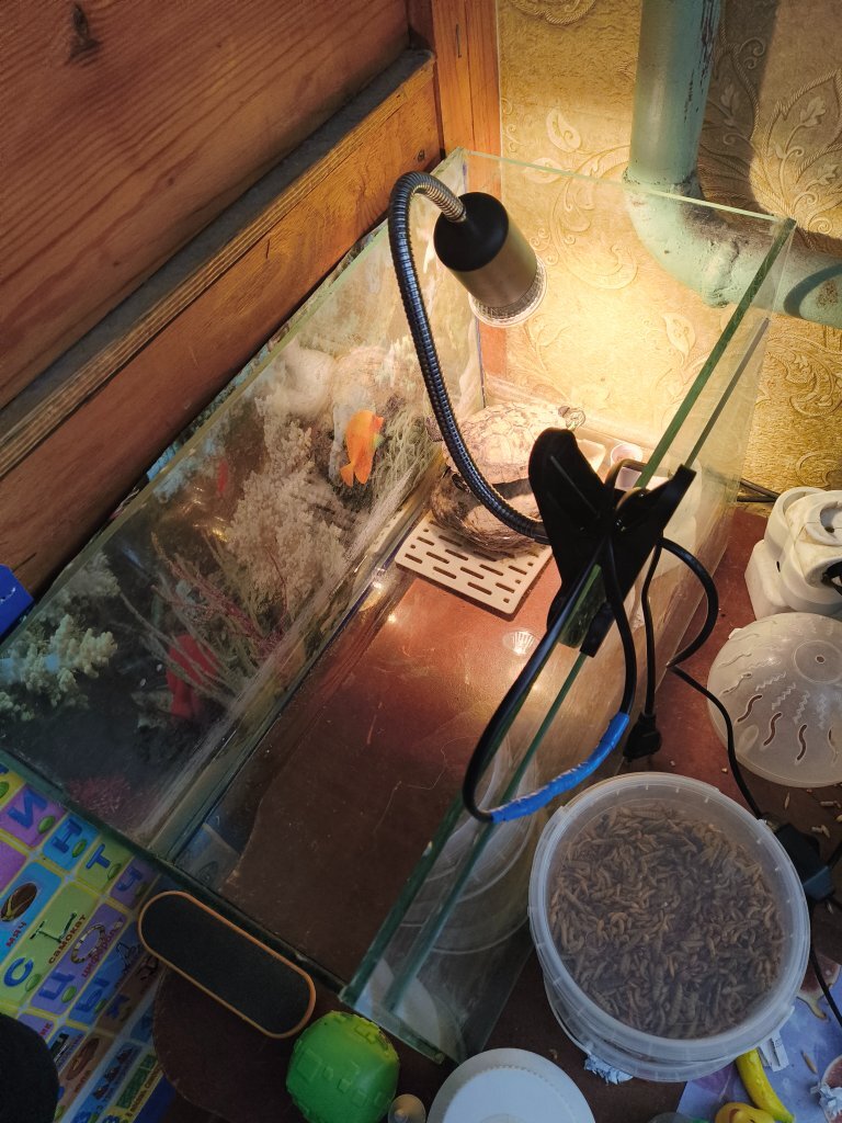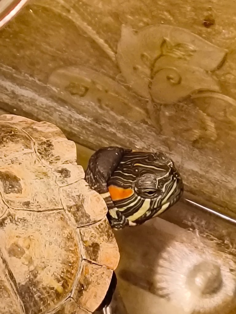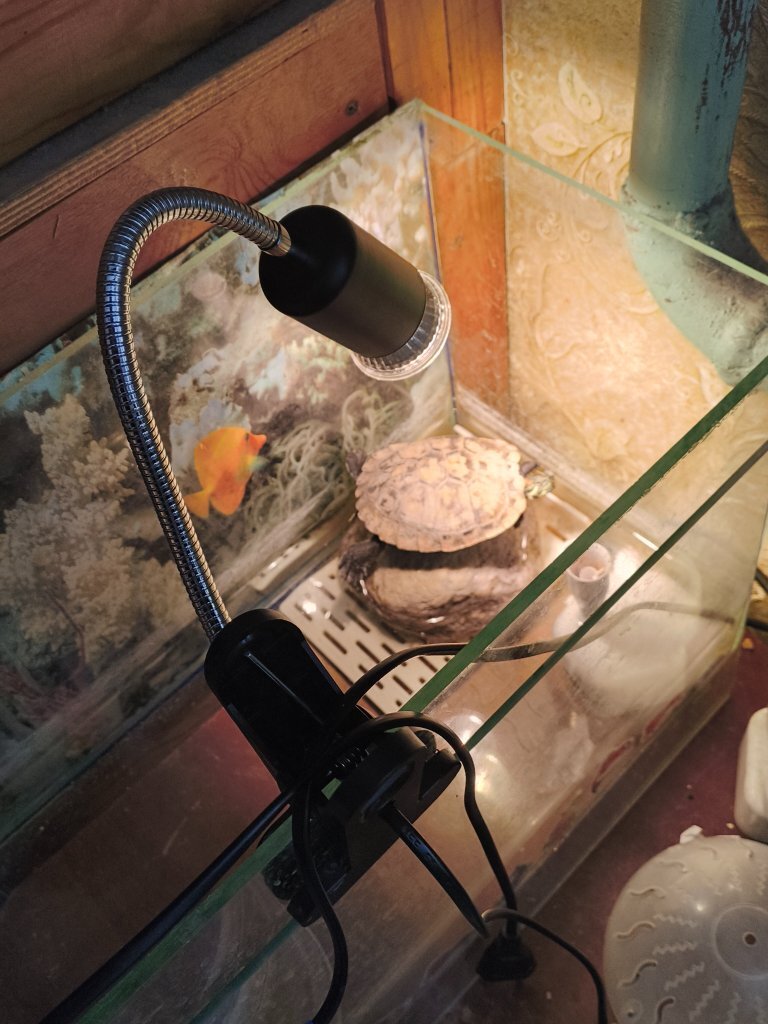 @DarthAlex @DarthAlex @DarthAlex здравствуйте. Где то 3 января купили ултр. лампу. Симптомы ушли, но к ветеринару не сходили, у нас в городе не принимают черепах. Сегодня заметила, что она выныривает головой и приоткрывает рот.Также пытается лечь боком прижавшись к аквариуму