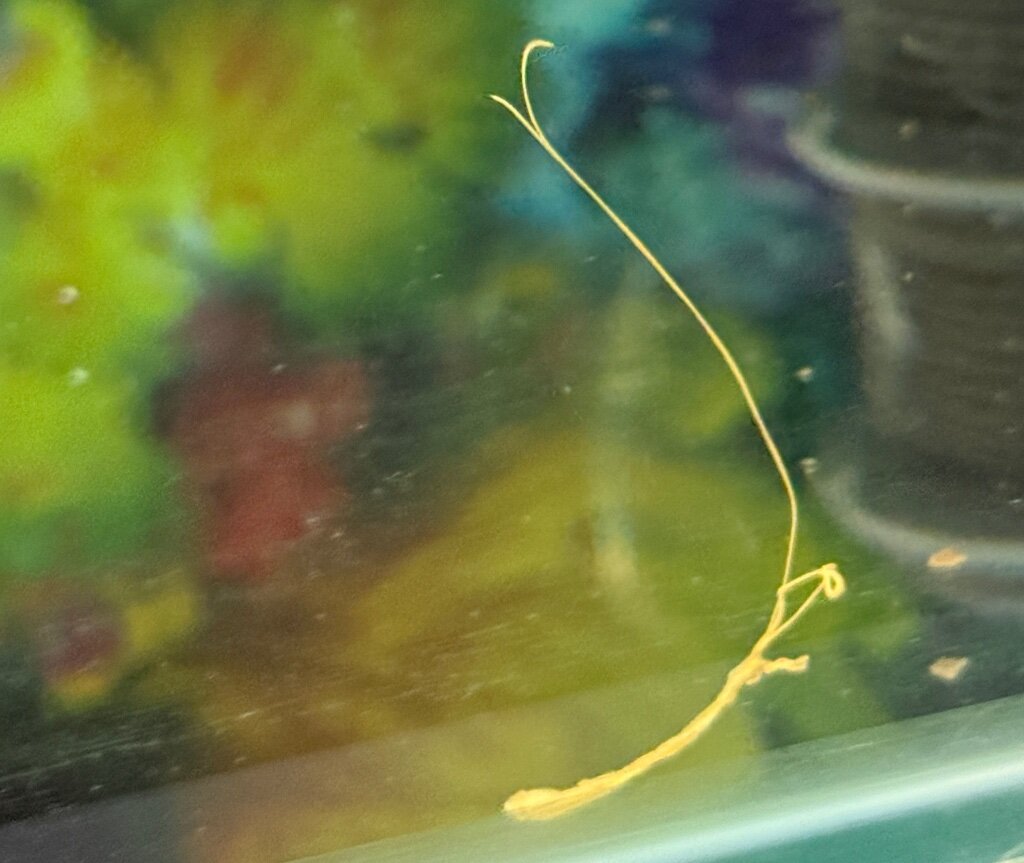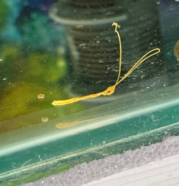 Всем здравствуйте!! нужна помощь, увидела в аквариуме что-то похожее на глиста, но не смогла найти в интернете таких глистов, что-то длинное, тонкое, вроде не шевелится, вообщем не пойму что это. Позавчера давала ей сушеную рыбку для черепах, может это кишка рыбки?