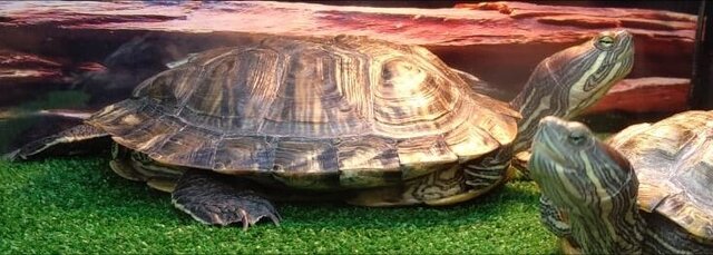 @vvbhjuutdss Моя Даша - черепаха-загадка, при ее идеально ровном изначально панцире ее выкинули осенью в холодном подъезде, пришлось лечить от пневмонии ! При этом она сама не хотела выздоравливать, хотя пневмония прошла быстро - оказался блефароконьюнктивит, и она отказывалась есть (кормил с рук), когда удалось уломать ее начать есть - пошло и выздоровление, но очень медленно. И по поведению она больше напоминает природника, хотя обычная красноушка ! Видимо, что-то произошло с ее хозяевами, и до этого она жила возможно - большую часть года на улице, т.к. выкинули в новостройке на месте частных домов. Теперь уже ее историю не узнать. Как и возраст. У меня она 7 лет. Ко мне она попала - 700г, если считать что это был подросток, то ей сейчас 10лет. Но может и больше - она начала быстро расти, и потом через полгода перестала, с тех пор подросла совсем немного, сейчас 1,3кг.