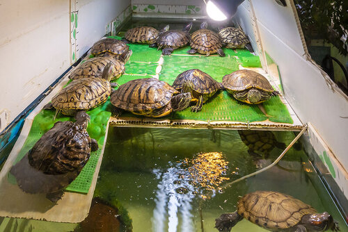 Красноухи у меня с 1993 года, причем из 5 "пятачков", подаренных мне сослуживцами со словами - "В книжке написано что выживают 40% - вот у тебя пара и останется" - выжили и выросли все 5, а сейчас, 30 лет спустя, из этой команды живы 2 парня - Рафаэль и Микеланджело (тогда как раз сын черепашек-ниндзя смотрел). Переехали за город и решила осуществить мечту - создать им большой дом. Емкость - 4200 литров, пруд. Над прудом - конструкция, сотворенная местными мастерами по изготовлению парников. Как матрешка - каждый полукруг на своих полозьях. Лето - с июня по сентябрь и ночевали там, в сентябре начала вылавливать на ночь и уносить в дом. Одно недоделано - сын пообещал и забыл - мостки. Пока доску бросила.5 баллов