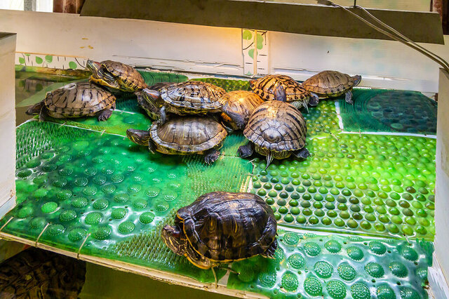 Недавно впервые была в Минском зоопарке. Кроме того, что там есть террариум ( с ,честно говоря, очень тесными аквариумами и террариумами), там есть и абсолютно прекрасное место для черепах - а именно: экзотариум. Вот где черепахам раздолье! Там я впервые увидела угольную черепаху, лучистую и звёздчатую , грифовых черепах... Очень много красноушек, конечно ( мирно живут с крокодилами:). Триониксы, болотные, среднеазиатки... Прилагаю фотографии.4 балла