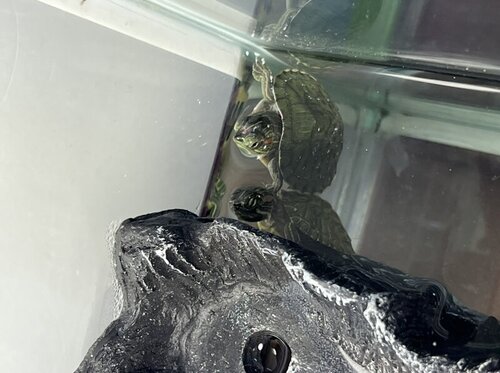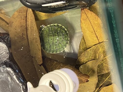 Черепашка весит уже 120 г, активна, ест хорошо. Утром просит еду, потом вылезает греться на берег. Думаю, что в этом году можно будет её уже выпустить в середине лета.5 баллов
