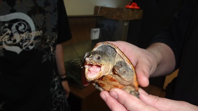 @Наталья Ви. больного нет, черепаха очень быстро погибнет. На волю можно выпускать только полностью здоровых животных.1 балл