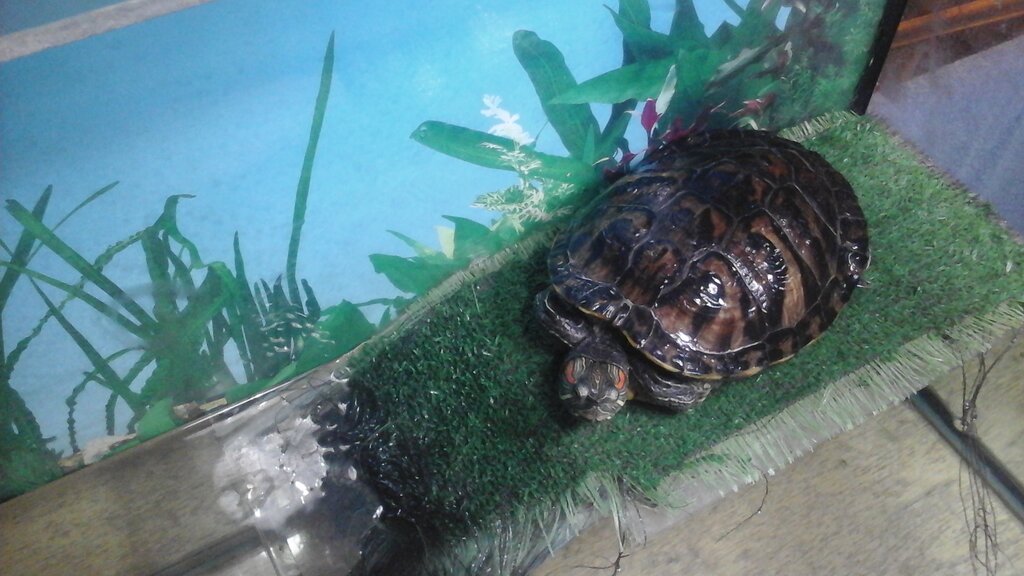 Ольга Иванченко Имя: Ольга Локация: Москва, Россия Опубликовано: 11 декабря 2024 Опубликовано: 11 декабря 2024 Живём в Москве. Прошлой зимой взяли взрослую красноушку, вроде бы девочка, лет 5-6, по панцирю 15 см была, линяла. Летом все было ок, поменяли аквариум на большой, 250л, половина воды, остров, внутренний фильтр. Две лампы, тепло и УФ, (точно не скажу, по рекомендации с вашего сайта), ра бота ют часов по 12-14 в день. Корм Рептомин стикс, раз в два-три дня по десертной ложке, изредка креветки размороженные (и зелень аквариумная, если заходим в зоомагазин). За год зверь вырос до 21 см, бодрая, НО постоянно треплет коврик от острова, что пластиковый, что "искусственную траву", жрёт нитки, хотя кость каракатицы часто даём. Также любит сидеть на фильтре, жрать с него поролон. А в течение двух-трех недель стала меньше кушать, отсаживаем в кормушку, а она не набрасывватся на корм, а совсем чуть-чуть клюнет - и все. Вроде и какает, но мало, при этом куски-нитки коврика зелёные плавают... При этом не вялая, плавает, на остров выходит ( даже ночью, когда нет света, зачем???), под лампой "ласточку" изображает. Читала на сайте у вас, что может готовиться к кладке яиц (?) или живот забился ковриком или просто "осень". Что делать?