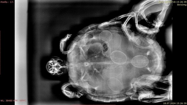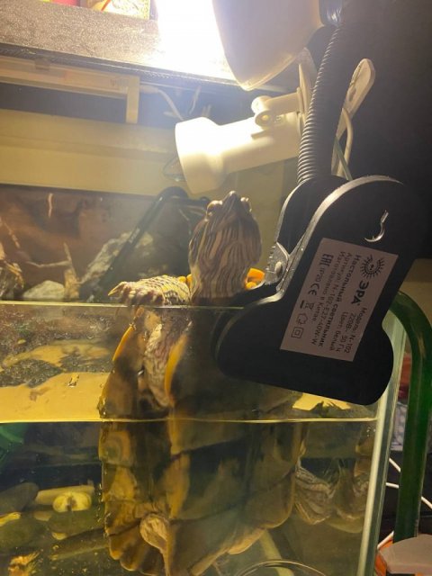 Инна Г Ваше имя: Инна Локация: Москва Опубликовано: 16 августа 2019 Опубликовано: 16 августа 2019 (изменено) 1) Из какого вы города (области)? Ваш возраст? 43 года, г. Москва 2) Какого вида черепаха? Если не знаете, хотя бы водная или сухопутная? Красноухая 3) Где содержится (пол, аквариум, террариум, контейнер)? Размер жилища? аквариум 20 литров 4) Какое стоит оборудование? (лампы [УФ, нагрев.], грунт, берег, нагреватель, фильтр) Нагреватель воды, лампа 40w, бережок, грунт цветные камешки, величина их больше головы черепашки. 5) Какая температура в жилище черепахи (воздуха/воды)? Как называется УФ лампа и как давно установлена? Температура воды 28 градусов, под лампой 30-32 градуса. УФ лампы пока нет 6) Что черепаха ест и как часто? Какие даете подкормки и как часто? Рыба минтай, живые неонки и гуппи, Рептомин-беби, лист салата, гаммарус сушеный. Позавчера в первый раз дали попробовать улиток. Кормим раз в день по вечерам. 7) Возраст, точный вес и длина панциря черепахи? В чём проблема/болезнь? Как давно проявилась? Возраст неизвестен, по словам ветеринара 3-4 мес. Панцирь 3,5 см, вес 11 граммов. Позавчера после кормления накануне улитками стала вести себя не очень адекватно. Плавала, втягивая голову, как-будто чего-то боится, при кормлении стала кусаться ( привыкла кушать с рук). Активность и аппетит были в норме, покормила рептомином-беби. Вчера придя с работы увидела, что черепаха плавает с сильным креном на левый бок и ее голова сильно повернута в левую сторону, как на фото, так она и держит голову при плавании. Активность повышенная, весь вечер металась по аквариуму. Видимо из-за крена и поворота головы плавает по кругу, при попытке залезть на камень падает и переворачивается на спину(((. Втягивает голову, как-будто чего-то боится. Если ее взять на руки за панцирь - машет головой и лапами, пытается вырваться, поставила на стол - попыталась убежать, очень быстро для нее. Аппетит при этом в норме, жадно съела 2 палочки рептомина, просила еще, но я ей больше давать побоялась. К ночи угомонилась и залезла под лампу греться, там и спала всю ночь. Сегодня с утра вялая, лежит на камне, опустив передние лапы в воду, не плавает. Что происходит с черепахой? 8) Обращались ли в ветклинику ? Куда, к кому, что назначили, что сделано по рекомендации? 2 недели назад были у ветеринара на ул.Медынской 5а, т. к. наша бабушка перекормила его сушеным гаммарусом. Назначили голод 3-4 дня и дали ему боботик. Купали 5 дней в ромашке каждый день. После этого все было хорошо. Изменено 16 августа 2019 пользователем Инна Г