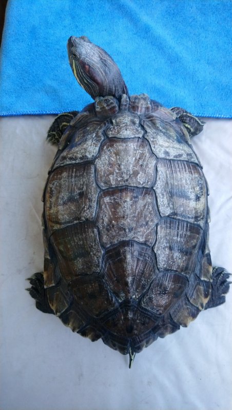 NataLiRED Ваше имя: Наталья Локация: Арзамас, РФ Опубликовано: 12 июля 2021 Опубликовано: 12 июля 2021 1) Наталья, 32. Арзамас (Нижегородская) 2) Красноухая 3) Пластиковая коробка на 60 л. Объем воды около 40 л. 4) Нагреватель Aquael comfort zone Gold 100W. Берег - плавающий "камень" (полноценно сидеть на нем не может, плавает на нем, высунувшись половиной тела). Фильтр отсутствует (черепаха с детства категорически против любых видов, пришлось все убрать, когда выросла и стала их самостоятельно демонтировать), смена воды полным объемом 1-2 раза в неделю по мере загрязнения. Последняя уф-лампа была около года назад Exo Terra UVB 150, 25W (не зашла, в какой-то момент у черепахи стали краснеть уголки глаз (век?), лампа ушла рассаде по наследству), с тех пор отсутствует. 5) Грунт отсутствует. 6) Воздух сейчас 29-32, вода 28-29. Нагреватель до недавнего времени стоял на 28 всегда. Убавила сейчас до 25. Но жара пока продолжает греть. Так как нет полноценного берега, по вечерам вытаскиваю ее из воды ходить по дому пару часов. 7) Обычный рацион (до болезни): - рептомин (щепотка каждое утро + иногда в обед) - рыба (филе с костями, без внутренностей): путассу, навага, треска (вечером, через день-два) - иногда: креветки, икра (та, которая попадается в ее рыбе) - редко: консервированные сверчки, зофобас, печень куриная, сушеные креветки и кузнечики. 8) 6 лет, 3,1 кг, 27х18 см. Подозреваю, что происходит что-то не то с процессом кладки. Самца нет, яйца носит с 2018 года. В этом году 4 раз. Как обычно весной (но в этом году на месяц раньше, в середине марта; до этого был апрель-май) начала беспокойно себя вести, проситься из воды, штормить там. По отработанной схеме начала на ночь ее забирать из воды. У нее есть "родильная" картонная коробка, в которой лежит плед Она там спит, накрытая покрывалом. Перед тем, как улечься, как обычно что-то роет, копает. В предыдущие годы этот процесс выливался в постепенное начало кладки где-то в июне. И дальше 1-1,5 месяца "ловила" яйца. Сейчас середина июля и до сих пор ничего. По всем признакам процесс идет. Стал плохой аппетит. Перешла на режим корма через 2 дня. Сложно ей что-то скормить. Сухой корм вообще игнорит. Рыбу ест по 1-2 маленьких кусочка в неделю, дай бог. Более-менее ест креветку. Это у нее каждую кладку так было. Отказывается от рыбы, ест практически только креветки, потом яйца выходят, снова начинает есть рыбу. Но яиц нет, а кормить ее постоянно креветками тоже не есть гуд. 9) Герпетологов в городе нет, в ветклинику не ходили с ней. Почитала на прошлой неделе форум. По итогу записала ее на рентген, завтра идем делать. Результат отпишу. Попутно спрошу про грибок (?) панциря. Надо бы серьезно заняться. - Периодически держу в синьке, не дольше недели обычно. Прочитала тут, что надо месяц минимум + мазать противогрибковую мазь на ночь. Ок. Налила синьки, купила сегодня Экзитер (тербинафин 1%, крем). Что еще? Элеовит? Кальций? Элеовит колола ей один раз в жизни. В первые полгода, когда заболела и опухли глаза. Больше витамины не применялись. - Опять же, прочитала тут, что грибок распространяется в теплой воде и 28 градусов много. Убрала вчера на 25. Оставлять так на постоянку? Не холодно будет? Берега-то полноценного нет. - Рацион. Попробую давать рыбу с внутренностями. Здесь не найти каких-то мелких рыбок, чтоб целиком давать. Но могу "не очищать" филе. Креветки не давать совсем? Овощи и растительную пищу скормить ни разу не получ