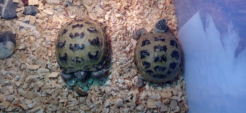 Ezha2008 Ваше имя: Евгения Локация: Россия, екатеринбург Опубликовано: 7 января 2022 Опубликовано: 7 января 2022 Добрый вечер. Взяли черепашек среднеазиатских из магазина, они изначально были в очень плохом состоянии. Знаний никаких по содержанию черепах нет, поэтому внимательно изучив все, что тут пишут, постаралась создать приемлемые условия для них. Поняла далеко не все))) осталось очень много вопросов. Сейчас черепашки хорошо кушают, но с рационом беда пока. Салат едят, чуток моркови иногда добавляю или яблока, обязательно кальцием посыпаю. Корм немного даю, но не едят его почти. Сено луговое сегодня должны доставить. Шкурка пересушена, панцирь тоже. Одна изначально попала к нам с трещиной (( Лампочки поставила- ультрафиолет и обогревающую. Пока живут в пластиковом контейнере. Подскажите, как им помочь? Про витаминки думаю, но не знаю какие. Посадила морковь, чтобы ботва была. Очень боюсь,что они погибнут.