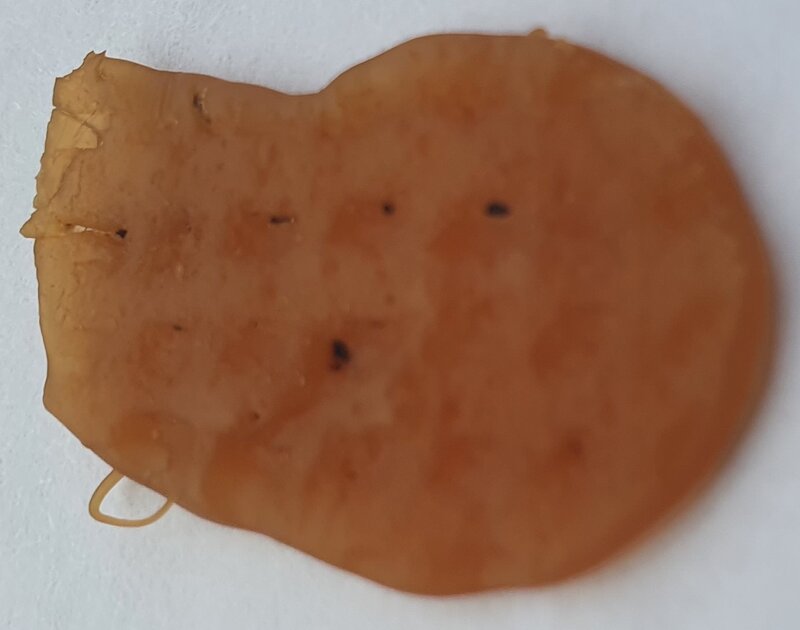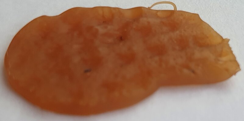 Антон123 Имя: Антон Локация: Москва Опубликовано: 19 мая 2022 Опубликовано: 19 мая 2022 Кто знает что это? Несколько месяцев назад увидел в аквариуме с красноухими это... Кусочек непонятно чего. Сфотографировал с разных ракурсов. На ощупь как резина, но легко рвется. Упругое. С одной стороны оно гладкое, с другой - типа вафли... Размер 2,5*1,5 см. Видел такую же где-то пол года - год назад, просто выкинул. Потом эта появилась. Убрал в пакетик чтоб потом на форуме спросить что это. Вот спрашиваю. Смердит страшно. через несколько пакетов вонь проходит. Чем-то типа гниющей органики. ПС. кормлю только рыбой, креветками. Попасть в аквариум ниоткуда ничего не может. Ощущение, что это из черепахи. Что это?