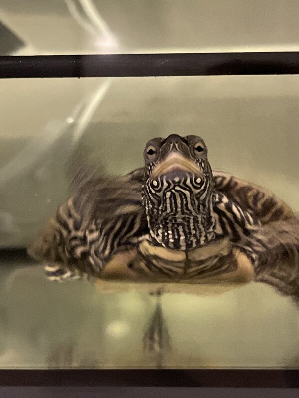 rekinfrihed Ваше имя: Анастасия Локация: Амстердам, Нидерланды Опубликовано: 6 августа 2022 Опубликовано: 6 августа 2022 (изменено) Добрый день?. Заметила странность, что когда кормим черепаху (чередую рептомин и сера карнивор проф), в этот день после еды странно себя ведет. Часто просто лежит на дне или ползает по дну и выражение лица становится «тупеньким», охотится за лапой (лежит смотрит на нее и в один момент прикусит, потом опять смотрит) или за мной (такой же принцип как за лапой, но не кусает?). Может уснуть минут на 10, потом опять по дну елозит. В голодные дни он обычная нормальная черепаха, за исключением флирта с водным термометром, лапы не кусает и ими не интересуется, плавает себе в удовольствие. Чепе 13 лет примерно, вид false map. Кормим каждые 2 дня по 10-12 гранул. Когда мы его забрали и перевели с гамаруса на полезные корма, съедал гранул 20 (у прежних владельцев не ел почти). Затем начал сам потихоньку снижать пыл и ему хватает 10-15 штучек, потом просто выплевывает. Этот «тупик» в нем просыпается после еды с самого начала как его взяли, но нигде не могу найти схожего описания и если это вообще нормально? После еды он не очень охотно вылезает на сушу, ведет себя как наркоман под водой, к вечеру попускает и он уже греется безвылазно. На следующий день поведение обычное. Хотелось бы узнать норма ли это или перекорм? Сейчас вес 145 гр. Когда взяли (январь 2022) был ровно столько же. лампы: обогрев и уф аркадия компакт 10%. температура: вода 24.6-25 ночью, 27-28 днем, остров 25-26 ночью и 31-34 днем. Прикладываю фотку когда нас «штырит», вторая фотка «после отходняка»? Не знаю, может связано или нет, но у него не проходит «время спаривания». У нас нет других чеп, но есть водный термометр с которым он флиртует постоянно. Каждый день по несколько раз щекочет бедный термометр? может это как-то связано с его эйфорией после еды. Нас никак это поведение не беспокоит, только умиляет, но то что лапу видит как добычу и кусает немного напрягает. Линька нормальная, уже все щитки сошли, осталось только сзади карапакса парочка, но и те отошли почти. На коже ничего необычного нет, следов укусов тоже нет Забыла добавить, размер панциря 14.5-15 см Изменено 6 августа 2022 пользователем rekinfrihed