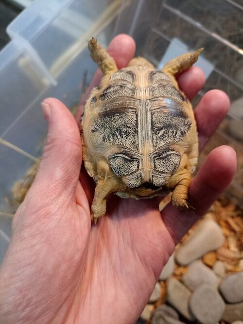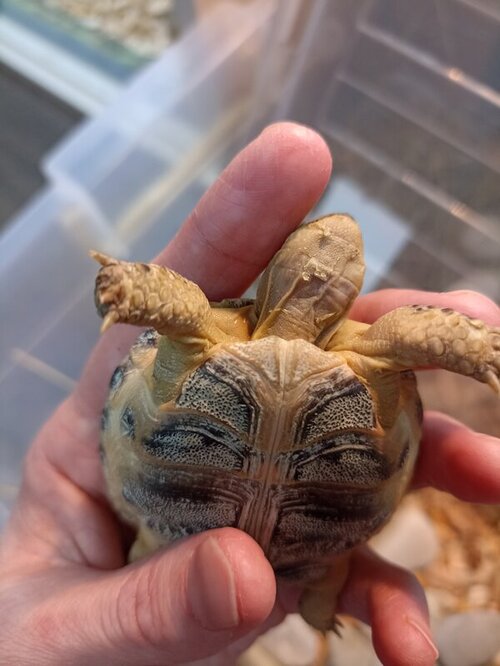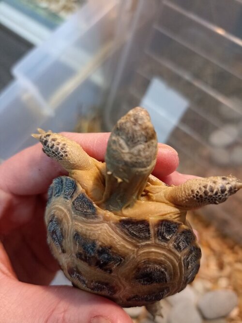 pavlovadarja Ваше имя: Дуся Локация: Россия, город Чебоксары Опубликовано: 22 августа 2022 Опубликовано: 22 августа 2022 Здравствуйте! 1. Чебоксары. 31 год 2. сухопутная среднеазиатская черепаха 3. террариум, 70*40*60 4. Лампа накаливания, уф лампа (10 спектр) Работают с 08:00-20:00 уф лампу поменяю, на хорошую при первой возможности. сейчас лампа с алиэкспресса Домик, поилка/купалка 5. Перепробовала разный, пока остановилась на щепе и камушках 6. примерно 30-33 7. огурцы, одуванчики, салат, кабачки, яблоки и груши. в качестве кальция - грызет мел 8. возраст не известен. вес - 550гр, длина 13см. ест только с рук, кроме одуванчиков и салата. 9. Да. клиника "4 лапы". врач сержанова елизавта михайловна. Элеовит по 0,1 мл 7 дней катобиовит по 0,1 ми 7 дней кальций добавки ежедневно Боюсь что она перекормлена п.с. Живет у меня 4 месяца. До этого держалась на полу, без условий. Ни разу не купали ее за 3 года, я раза 3 в неделю купаю Панцырь очень сухой и на пластроне отслаивается