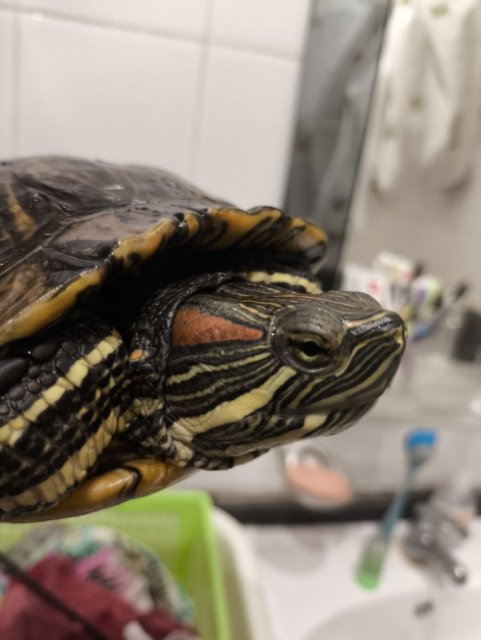 Remme Ваше имя: Екатерина Локация: Россия, Ярославская область, г. Рыбинск Опубликовано: 8 января 2023 Автор Опубликовано: 8 января 2023 О прошлом черепахи: Всё лето жила на улице на огороженной территории с небольшим водоёмом, максимум на литров 10-15, вода никогда не менялась, разве что подливалась. Кругом полно дворовых кошек. Кормили раз в неделю курицей, (сейчас кормим раз в 3-4 дня, вообще много информации потерялось из-за случайного закрытия вкладки). Когда её забирали, она была полностью зелёная, мать отмывала её с мылом (не бейте), полос было не видно от слова совсем. После отмывания на карапаксе были 3-4 симметричные полосы, сейчас же она как тигр, не знаю нормально ли это. Этому фото месяца 3-4. Мать кормила салакой, крабовыми палками и держала "на выгуле" на полу с подогревом, периодически мочила под краном во избежание иссушения. В воду помещалась разве что на 3 см на ночь.