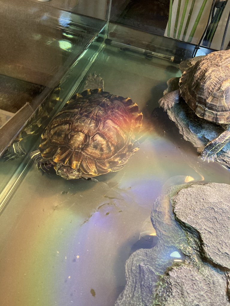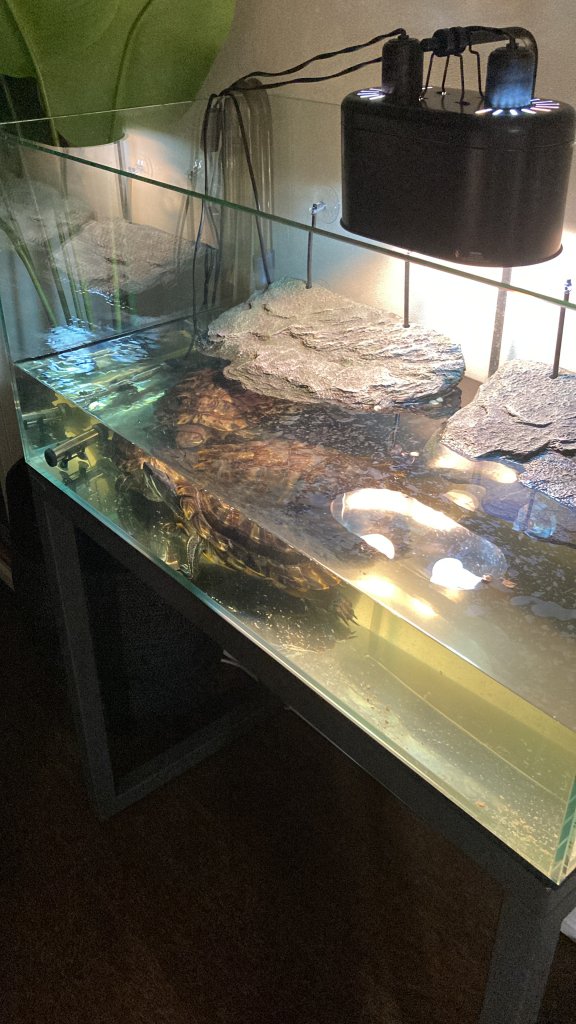ДимаЭ Ваше имя: Дмитрий Локация: МО, г. Королев Опубликовано: 20 декабря 2023 Автор Опубликовано: 20 декабря 2023 Добрый день. У нас возникли опять проблемы, к сожалению. 1. Черепаха, которую лечили, третий день сидит на плотике и не хочет спускаться в воду. вчера на пару минут спустилась и опять забралась. Может сидеть без лампы ночью. Что это может быть и как этот вопрос решать? 2. Недели две назад появилась какя-то пленка на поверхности воды в аквариуме. Тонкая и не плотная. Подмену воды регулярно делаем. Вчера добавид ReptoClean. Лучше пока не стало. Что можете посоветовать? Добавляю фото. Забыл... И еще