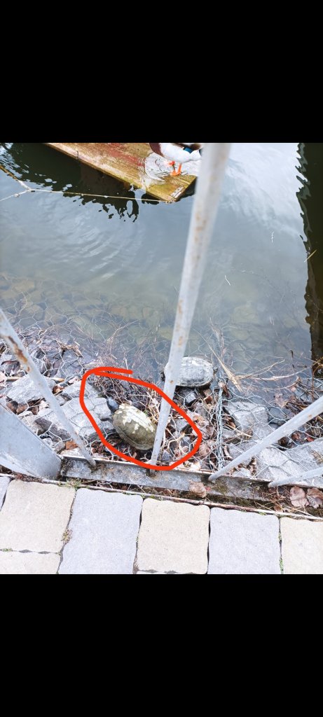 Назар Ваше имя: Назар Локация: Украина Опубликовано: 20 марта 2024 Опубликовано: 20 марта 2024 Сегодня ездил в городской парк, где есть пруд с лебедями и черепахами, что бы узнать как зимуют черепахи и понять почему моя не вылезла. Так вот , летом там полно болотных, красноухих черепах, е сегодня заметил только две черепахи. Сделал вывод что все ещё зимуют, а эти наверное раньше проснулись. Только вот интересный момент, одна черепаха красноухая однозначно, а другую не понятно, вроде и болотная, а вроде и красноухая, вот фото. "Непонятная' черепаха обведена. Вроде панцирь похожий и на красноухую, а голова как у болотной.... Могла ли болотная скрестится с красноухой?