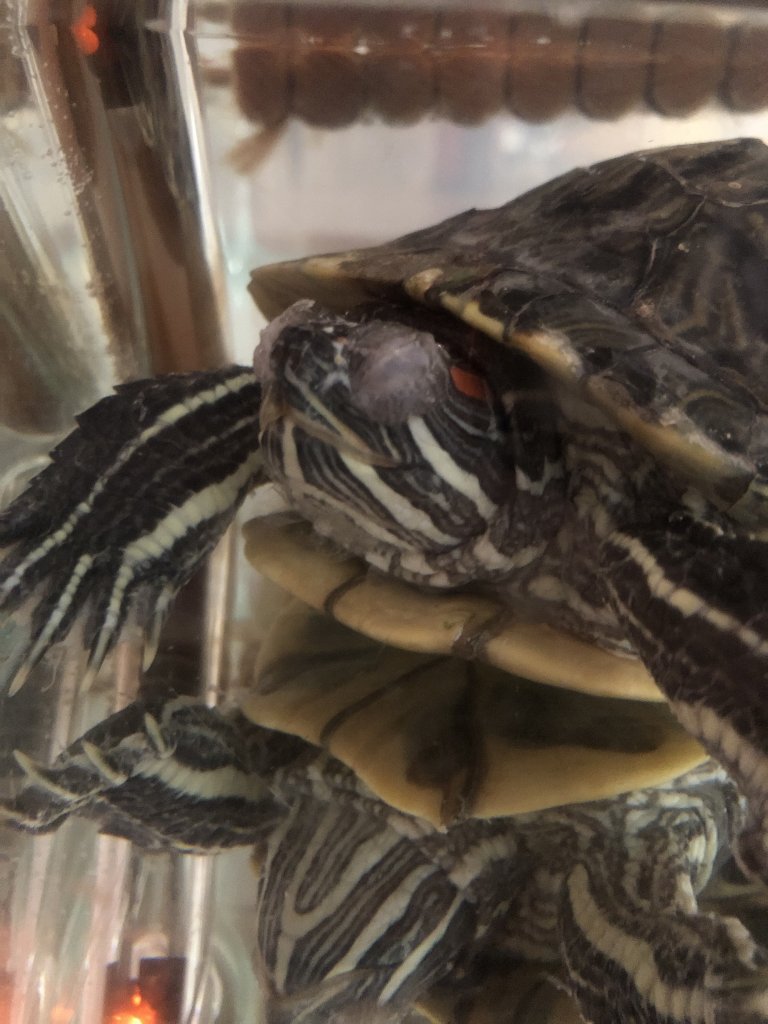 Елизавета2001 Имя: Кексик Локация: Россия, Челябинск Опубликовано: 16 апреля 2024 Опубликовано: 16 апреля 2024 (изменено) Здравствуйте! Вчера забрала в дорые руки черепаху красноухую самца (не точно) примерно 13 см ( подскажите какой это возраст) У меня черепах никогда в жизни не было, но я увидела что коллега моей мамы отдает черепах, на фото у него были водоросли на панцире, и весь он выглядел очень больным. Я пробовала отмыть водоросли чешуйки с панциря начали отходить и там белый налет, прочитала в интернете что это грибок.Я решила забрать. Принесли мне его в аквариуме литров на 40, с деревянным плотиком и воонагревателем. Про лампы вообще никто ничего не говорил.Видимо он так и содержался, потому что отдали мне «с аквариумом». Ну и судя по водорослям и жалобам, что он воняет. Сейчас очень жалею и кажется не справляюсь ((( Я принесла его домой, помыла аквариум, налила воду ( успела отстоятся только почти сутки), погрела ее и сунула черепашку. Весь день им любовалась, он кушал какие то сушеные креветки которые хозяйка отдала, а к вечеру ужас начался…. Закрылись глаза у него, начал их тереть. Ну просто ужасно опухло все. Я себя ненавидеть начала. Пересмотрела фото где только принесла его - там уже глаза были немного припухшие, я водой просто добила видимо. Я подумала, раз он жил так 4 -5 лет, три дня поживет пока с вайлдбериса все его новые штуки не приедут…. Глаза промываю как могу физраствором, капаю софрадекс и мазь гидрокортизол на веки накладываю. Ну в интернете нашла по статье делаю все сколько раз в день надо. Он смог на утро один глаз открыть под водой, и очень старался прям глаза открыть, вчера так не было. Сейчас он неугомонно плывет в стену, болит наверное сильно у него… аппетита нет у него, я не знаю как его кормили, я предлагала кусочки карася ошпаренного без крупных костей. Не стал(( Можно ли пару тройку дней подождать заказы с вайлдбериса, обустроить ему все и продолжить лечение дома? Если плохо будет все, то сходить ко врачу Изменено 16 апреля 2024 пользователем Елизавета2001